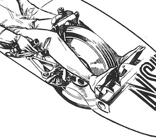Sopra un Disegno Sezionato del Sidecar NSU utilizzato negli anni '40 -'50 per la conquista dei Records Mondiali di Velocità